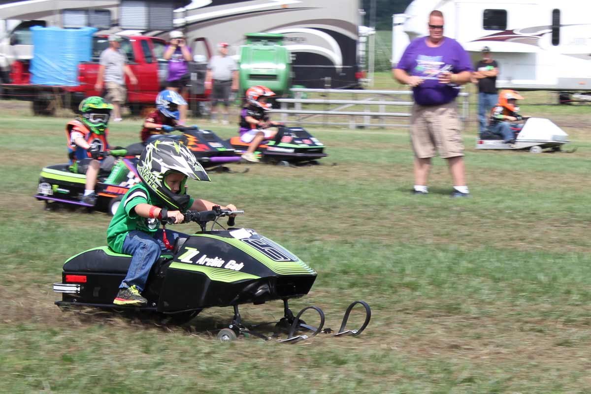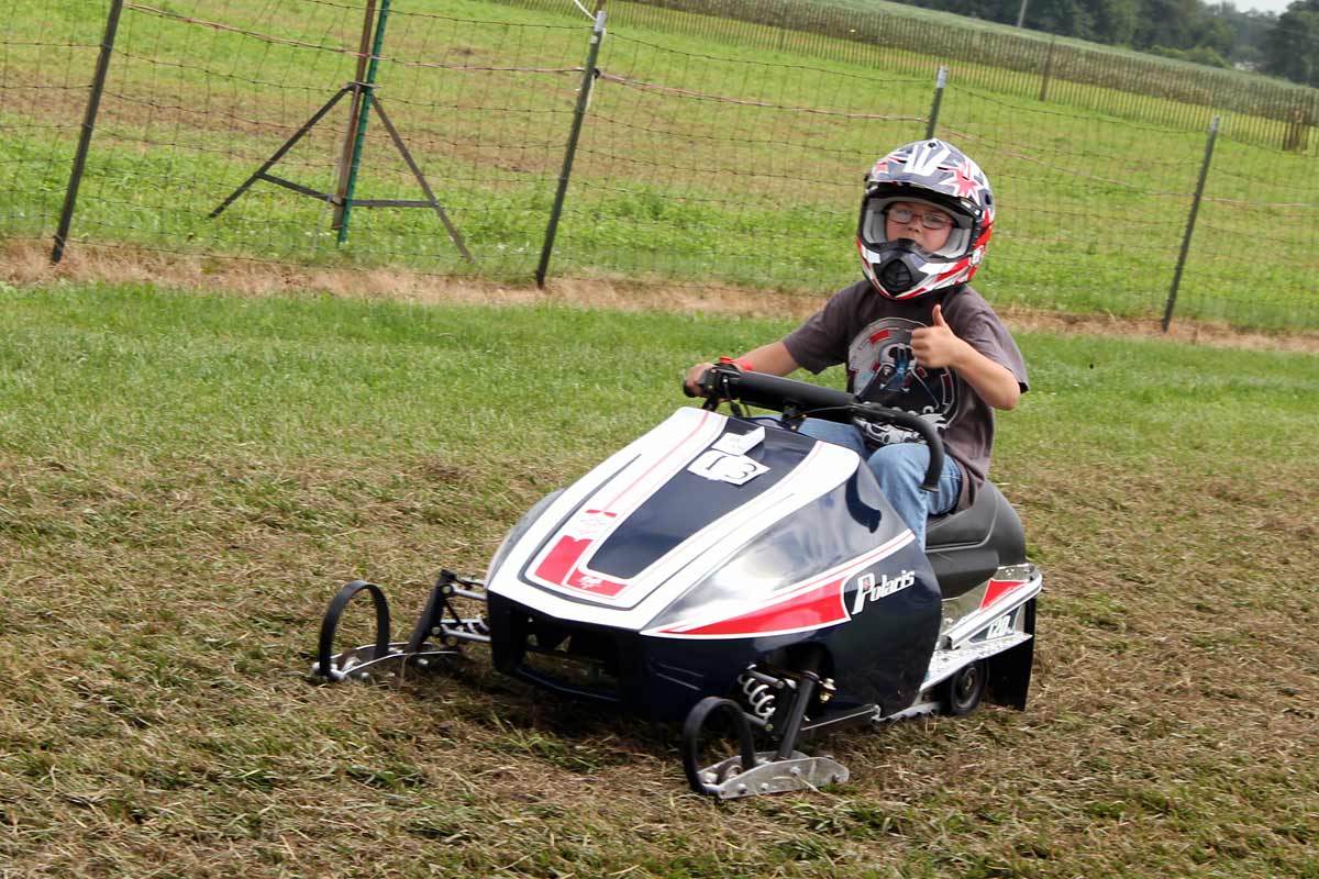 Dan Buchanan's son Zack aboard a Mini RXL powered by a Briggs Animal four stroke was unbeatable at the grass drags... no one challenged him.