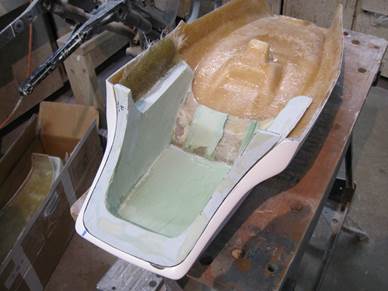 I looked back when this project began. It was February of 2014. I am one slow puppy. Okay I have a big report this time. In the last report I showed you the pattern making for the seat foam. It started as a pile of Bondo: